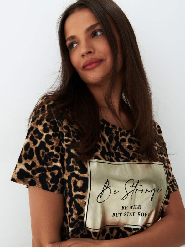 Znudziły Ci się klasyczne topy i koszulki w stonowanych barwach? Jako, że panterka wraca do łask, to postaw na t-shirt z panterkowym wzorem, który śmiało możesz nosić na co dzień.