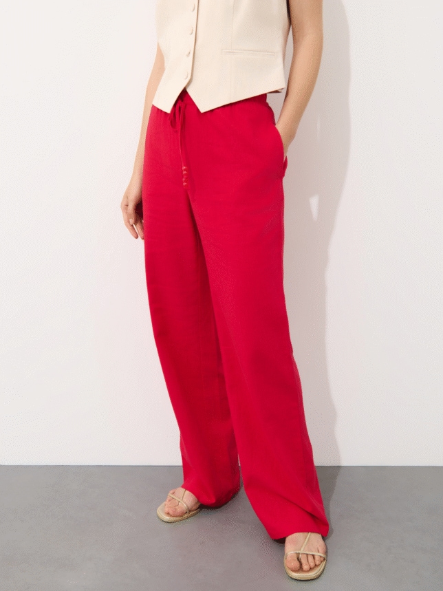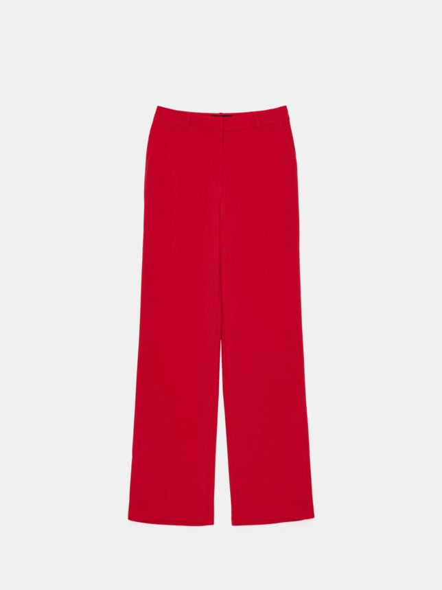 Vrei o combinație clasică? Îți recomandăm bleumarin, negru sau alb – aceste nuanțe sunt ideale pentru birou sau întâlniri importante. Pantalonii bleumarin cu cracul larg și cămașa roșie sunt o alegere de top. Ce spui de un duo roșu-negru? Merită să încerci și această combinație!