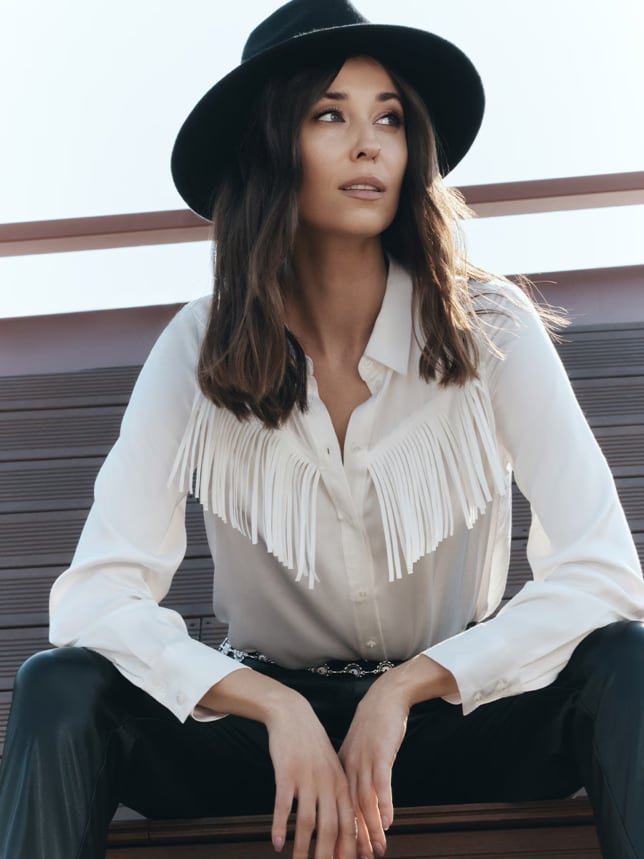 Jachete, cămăși, bluze cu franjuri – Franjurile sunt unul dintre cele mai importante elemente ale stilului cowboy. În colecția descrisă vei găsi jachete și cămăși stilate din imitație de piele întoarsă, decorate cu franjuri lungi, care adaugă fiecărei ținute dinamism și personalitate.